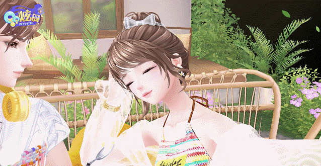 女生正在摇椅上睡觉,男生拿起冰淇淋捉弄她~