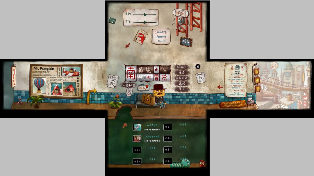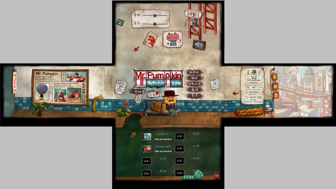 【10-1】南瓜先生大冒险,PC版.主界面(含一些秘密隐藏界面,选项界面,关于界面,读取记录界面)-全景视图