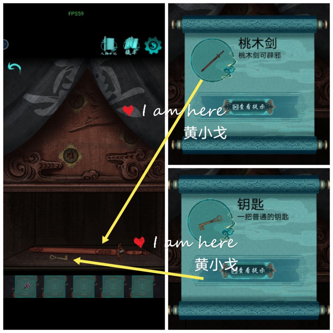 9.暗格打开,获得【桃木剑】和【钥匙】