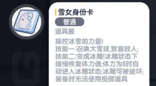 这张雪女身份卡相对来说是非常厉害的,因为他两个技能的CD都非常的短,拥有了这张身份卡,就相当于拥有了很多条命,如果你经常被偷,那这将是不二的选择,我愿称他为老六的终结者