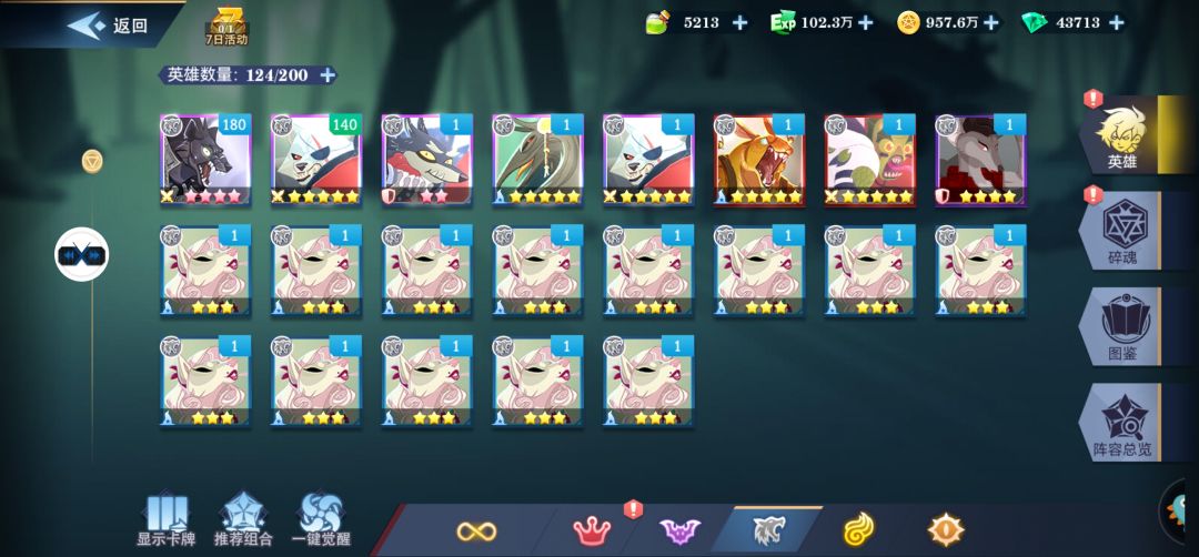 我这号开局两德古拉,一火树,这是在二十级之前出的,感觉很欧吧。然鹅,头七,暮夜策划给我上了一课,1000+抽普卷如果我没记错应该是四个还是五个神话而且两暴走狗,一狼叔,一雨果这种废物神话,只有一个鬼杀。德古拉我是靠着两次up保底,一次指定保底,艰难七天内十星。然后第八天,200抽普卷,你们猜怎么着?三老头,两哈士骑,两血王子,一猫女…