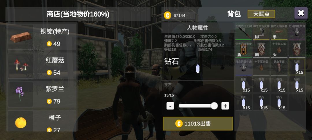 随便找一座近的城市,使用升价模式也就是购买便宜货把价格升到(160)卖出去就是10000块一组15钻石了。