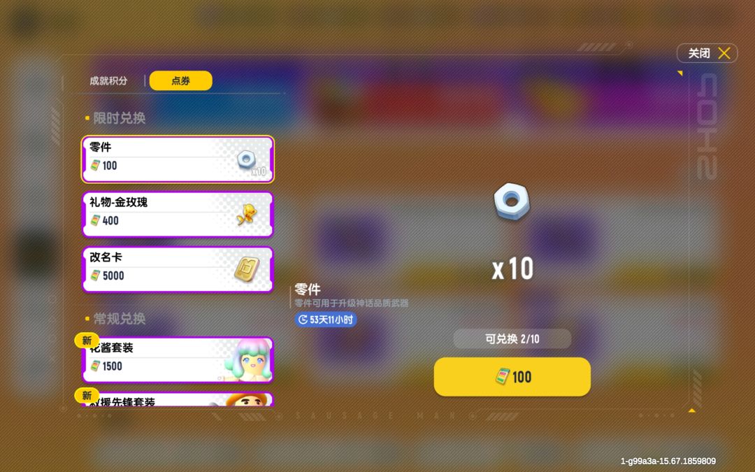 不再售卖缤纷钥匙,开始售卖零件(在升级神话武器过程中可以抵扣糖果)