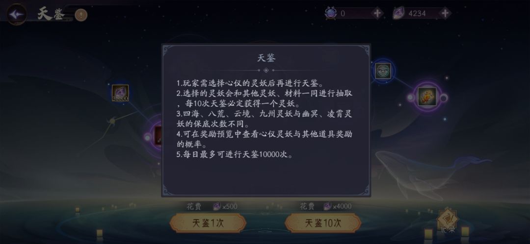 天鉴 先知 祈灵 种树 灵妖宝箱自选 自选灵妖妖魄兑换(每30抽高级祈灵可获取5自选灵妖妖魄,集齐50碎片可兑换梼杌等普通灵妖)(不推荐祭礼,天鉴,种树获取)