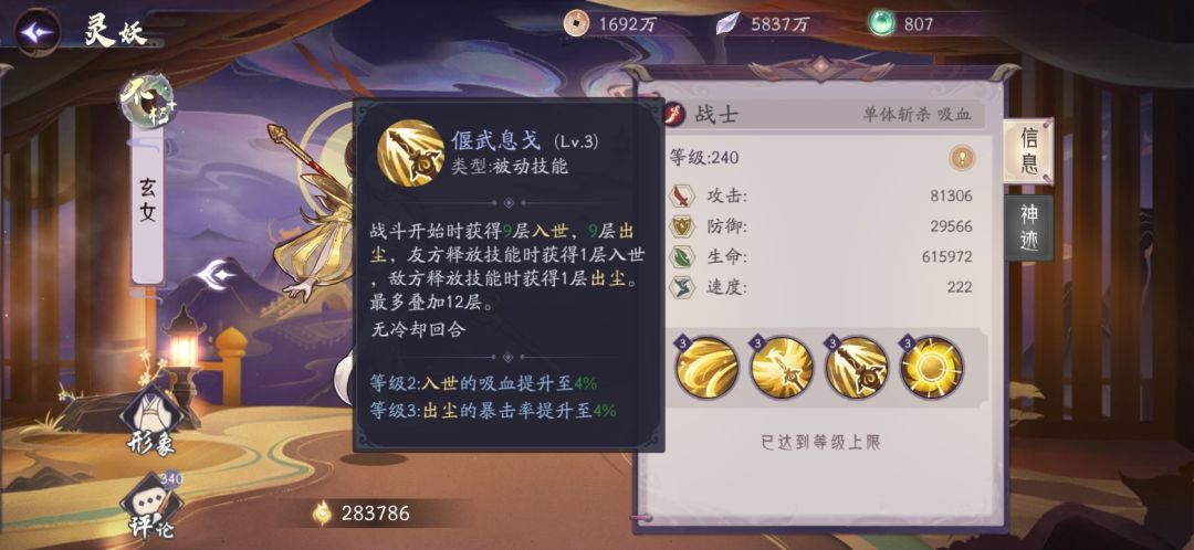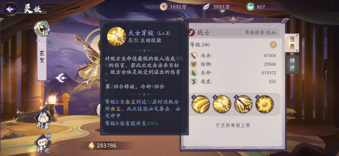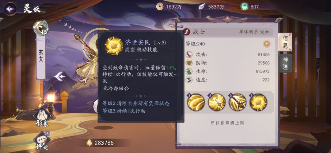 全体加速工具人,点灵枢后有提升队友伤害能力,并且自身也有不俗的至少伤害能力。可以为玄女压血量