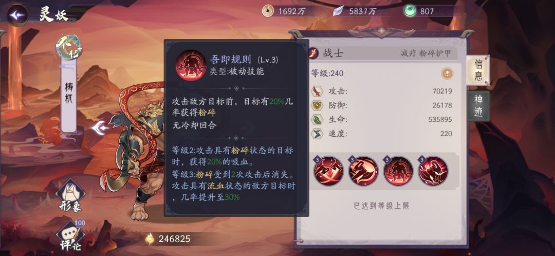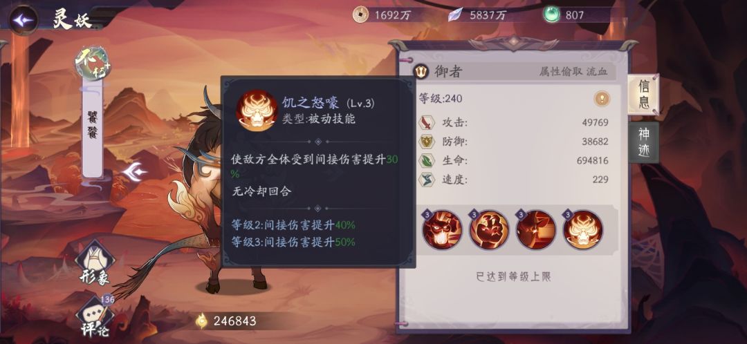 100%挂流血能力,搭配梼杌夔牛可提升,粉碎破甲概率,并且自身存活下有高额的间接伤害加成