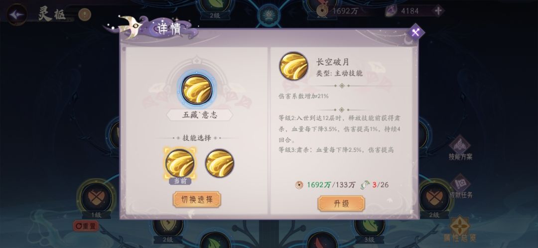 粉碎效果防御减100%,受击两次消失,点灵枢后二层一级提升20%二级提升三级受击三次