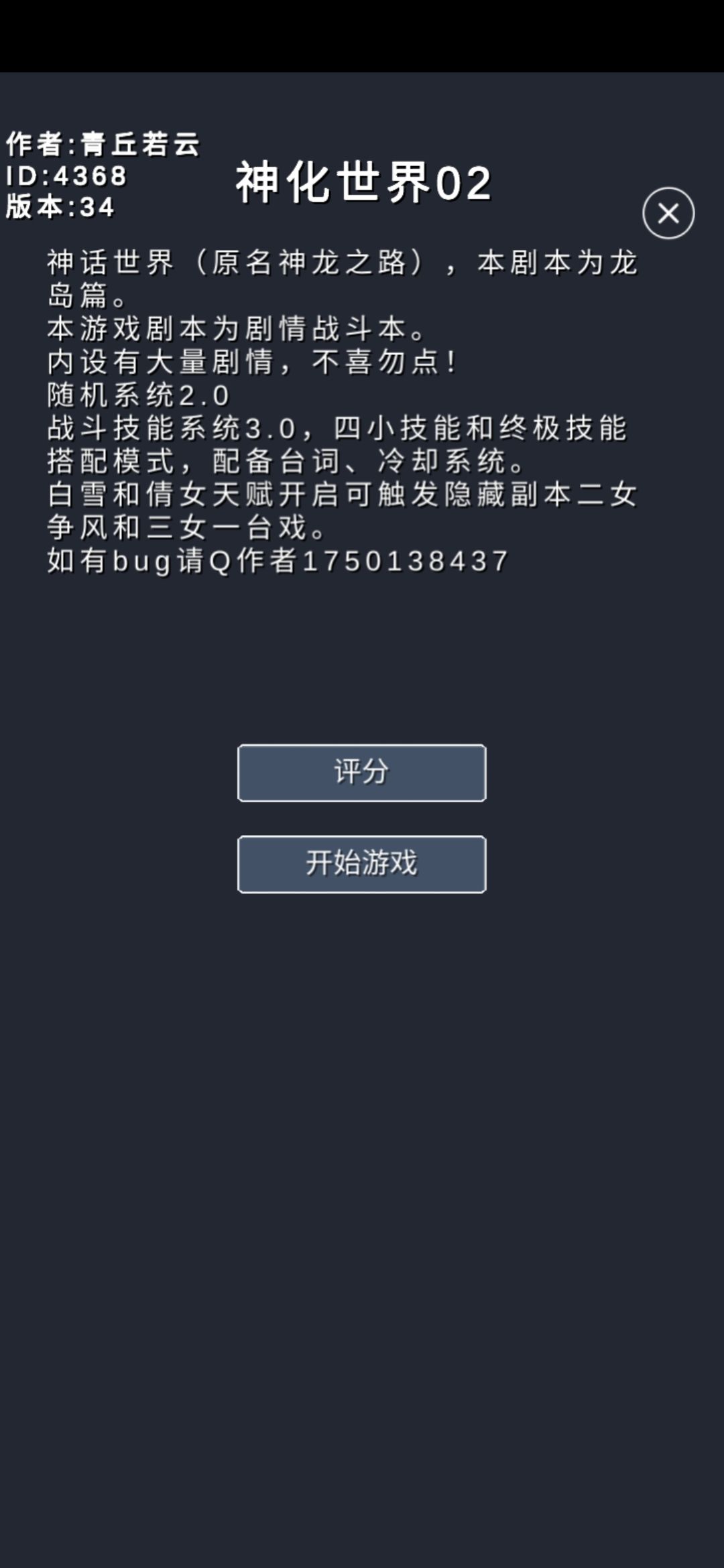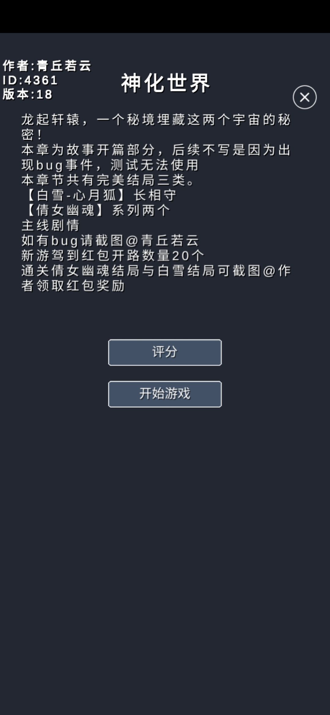 青丘处女作,神化世界(神龙之路)1、2两部都已完结上线。神一为存剧情本,神二为剧情战斗本,神二使用系统均为自主创作。