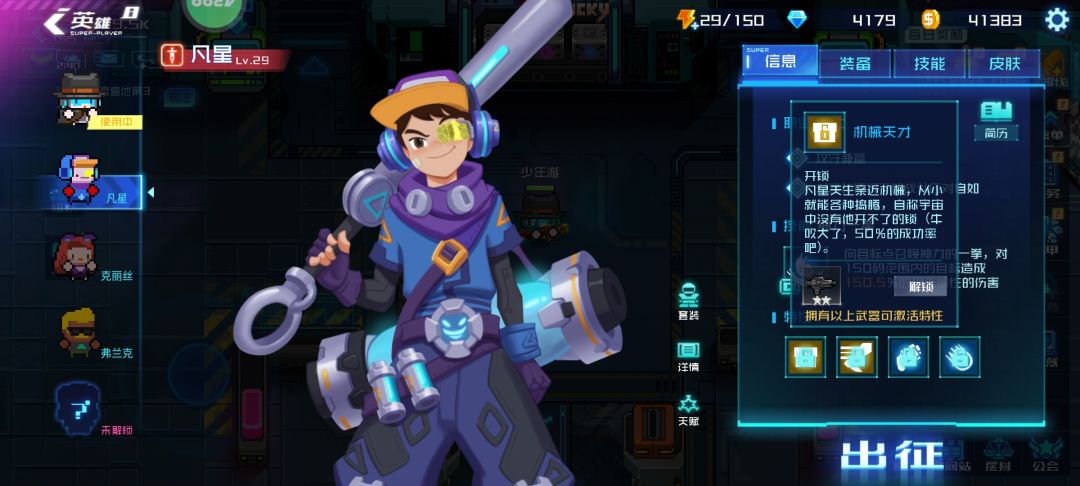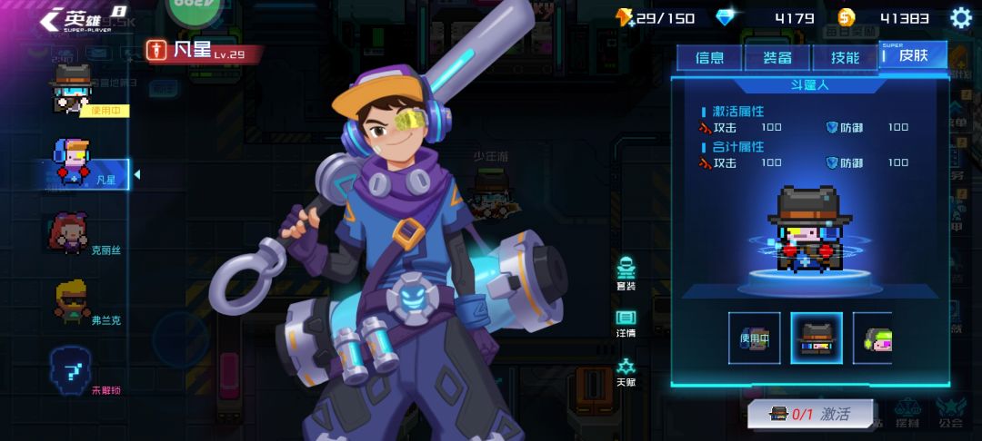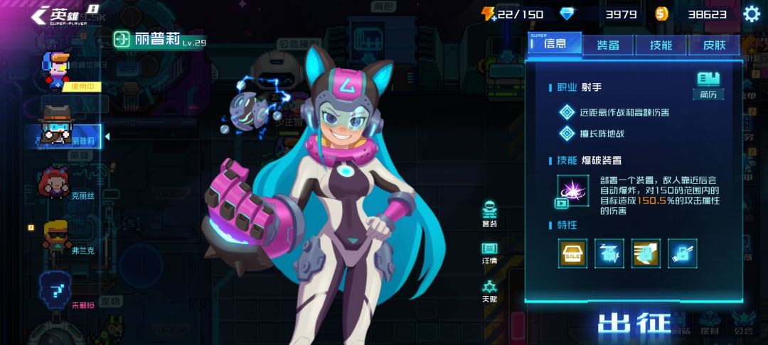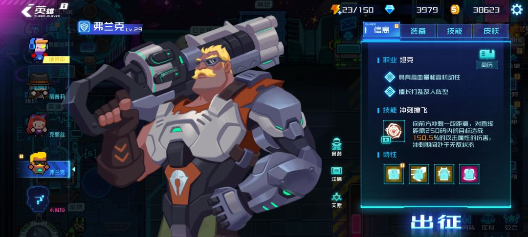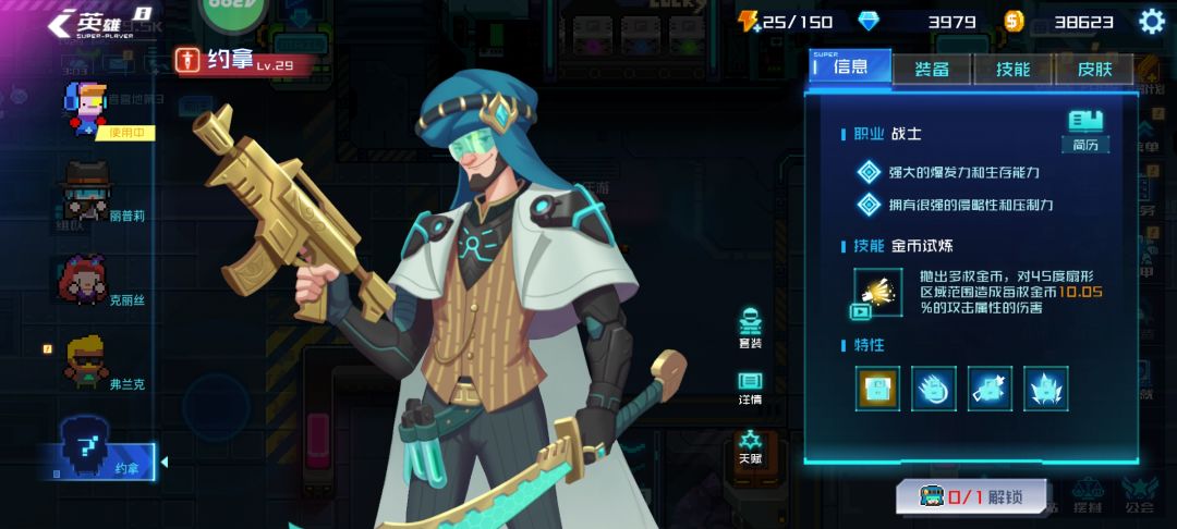 英雄们有专属的特性,芯片和皮肤: