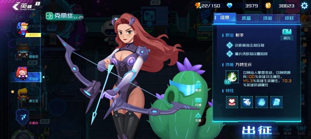 主要是培养英雄克丽丝(因为她的技能能吸引野怪的仇恨和抵挡飞行物伤害,对于新手玩家而言是很不错的,我个人也是喜欢这么用,尤其是一些boss技能很密集,很难躲掉)