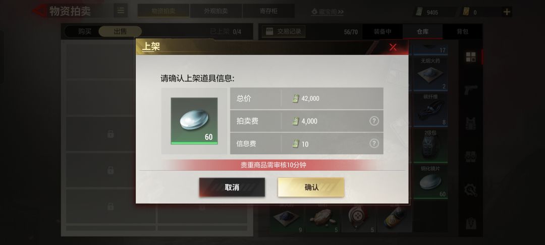 如果是交易所装备在交易所里是保底价,可以直接在背包里直接卖。因为背包卖的价格就是交易所里的保底价格,速度还快还省心!