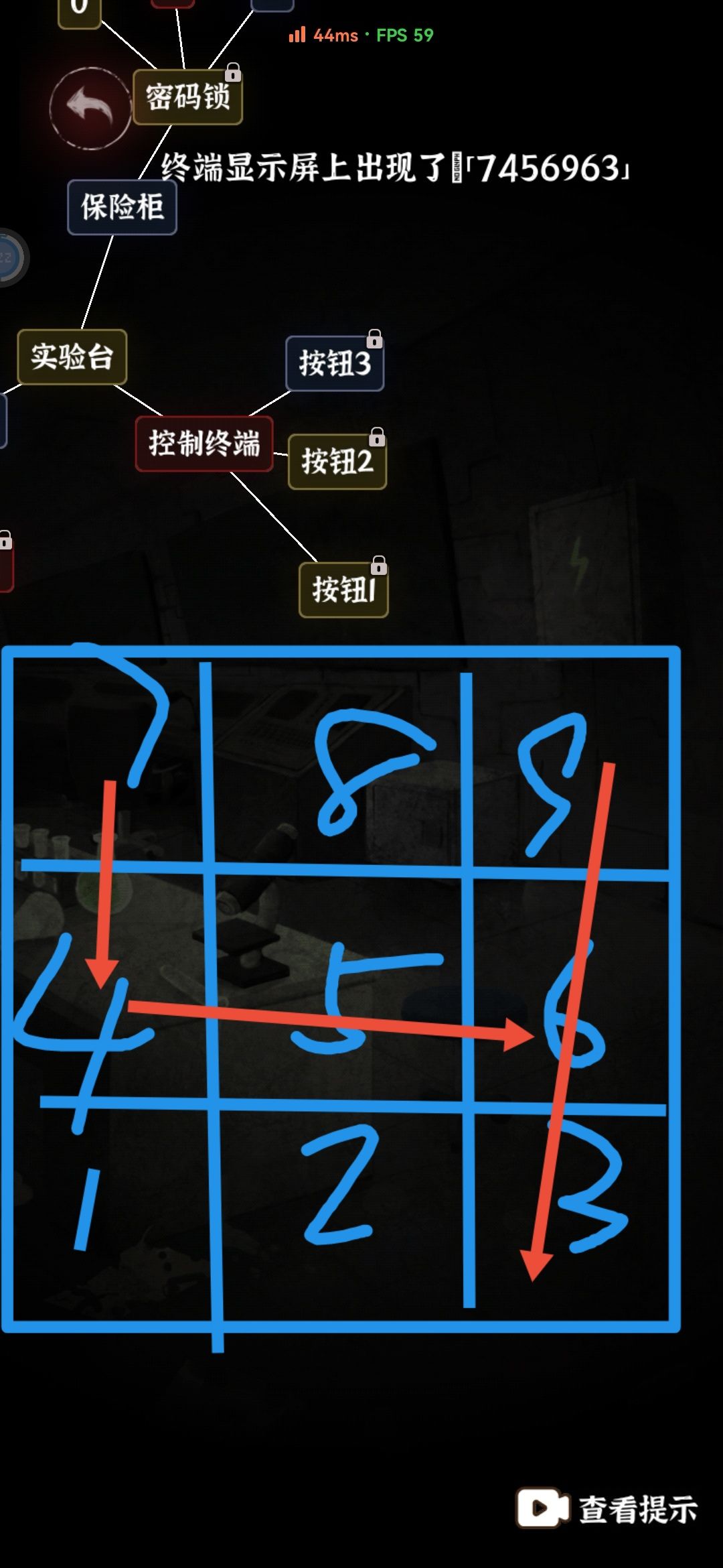 刚打开电源使“控制终端”通电,双击查看发现仨按钮。按照键盘的数字九宫格组成图形。