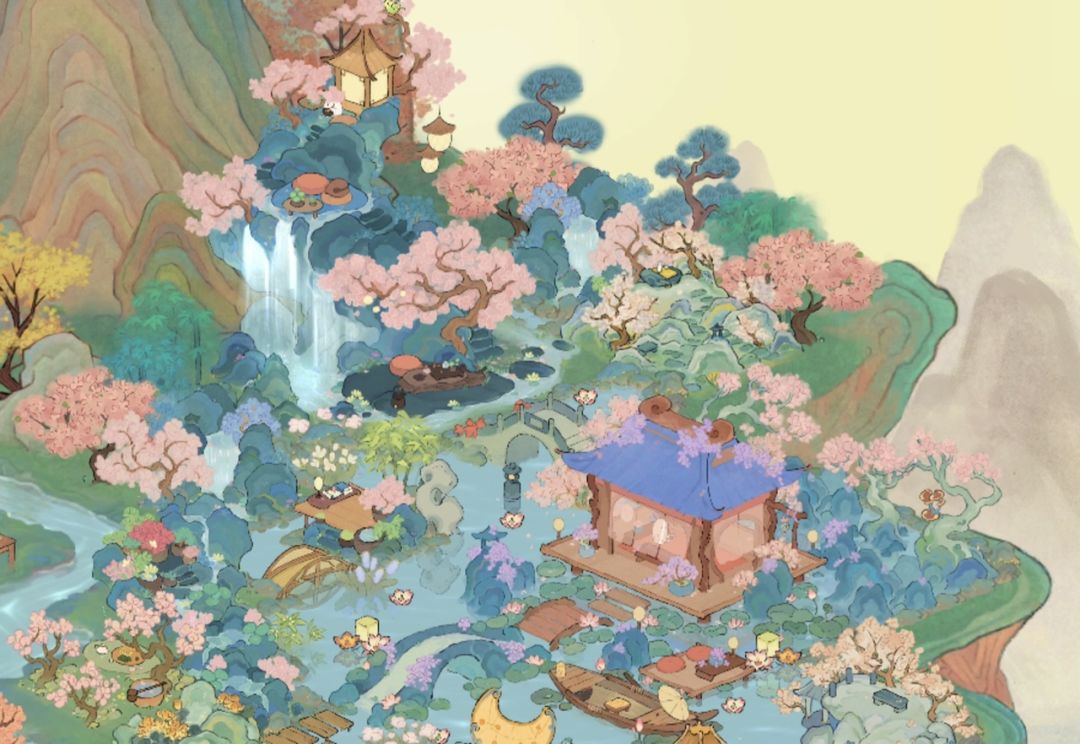 新建筑的色系与翠竹、苍松、樱花、桃花等元素都比较契合,加上自带特效中的白鹭飞过,画面很美~我也用上了上期的限定建筑琴台,配上悠悠荷灯、以及特意藏在树里的明院灯,让夜景也能星星点点的斑驳起来~真的有种夏夜湖边听蝉鸣、赏琴声,转身寻山而上觅禅音的临境之美!