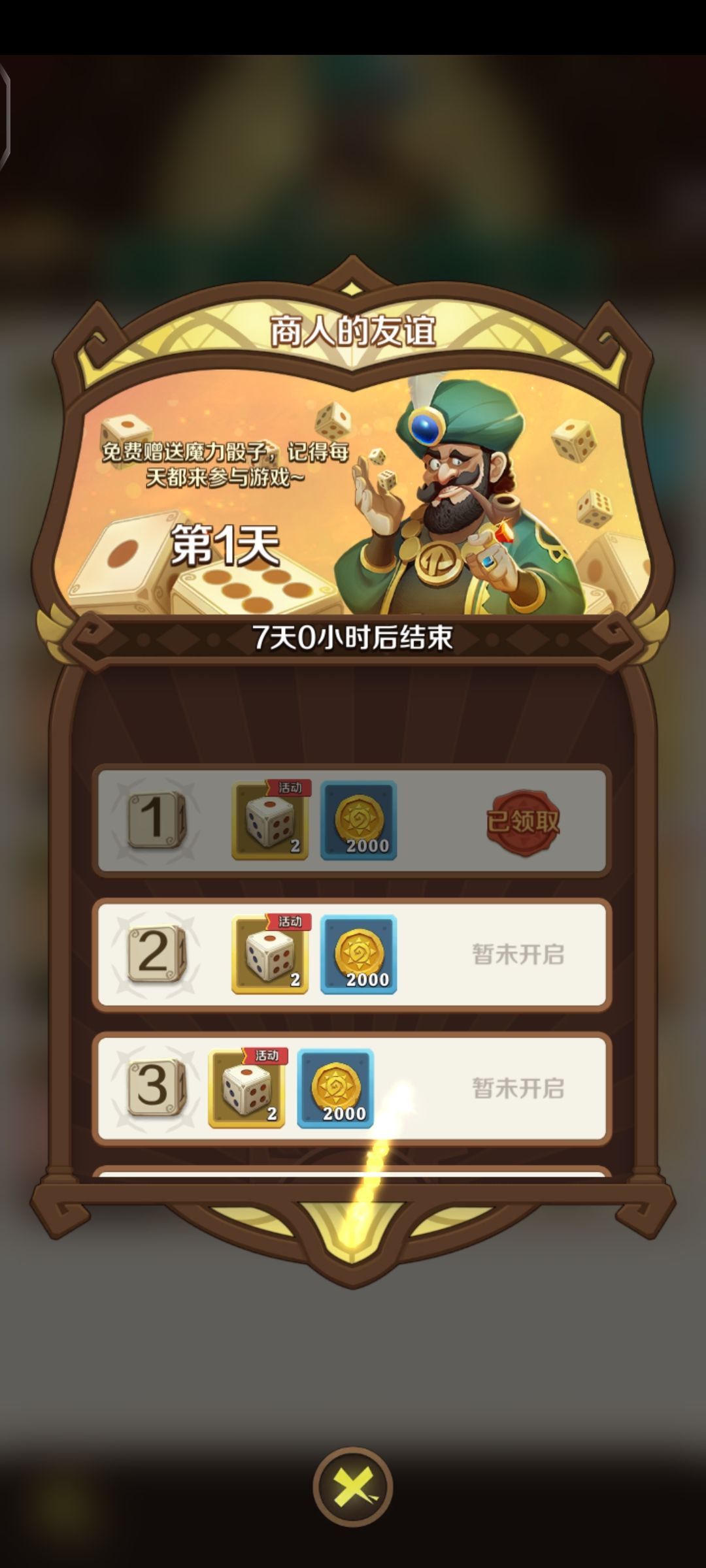 每日挂机平均12小时获取一个骰子(没到就是你欧 超过12小时就是你非_(:з」∠)_),按照活动时间为6天23小时59分,再按照每天快速挂机六次(12小时)为标准,那么我们七天总共可以白嫖到20个骰子![[TapFamily_跳舞]](https://img.tapimg.com/market/images/e60f8064b5fe2d624e84942db93208a6.gif)