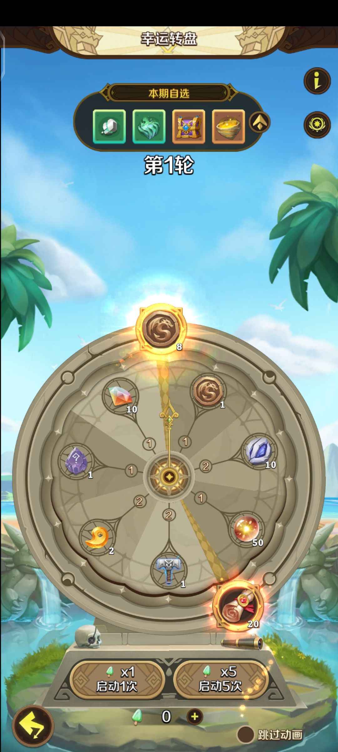在幸运转盘内,我们需要先行选定大奖才能开始抽取,我的建议是许愿币和抽卡卷轴