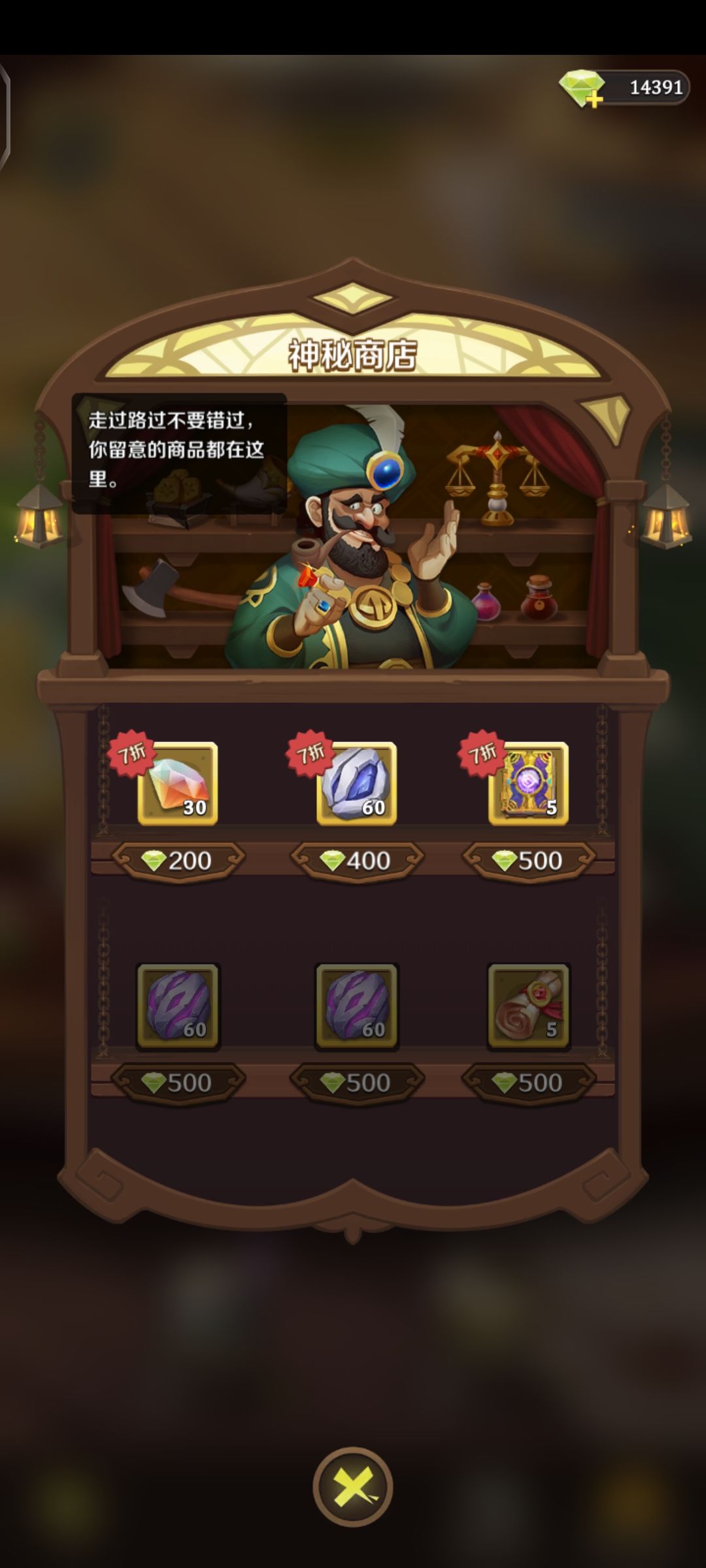 注:所有出现过的购买物品都会保留在右下角的神秘商店内