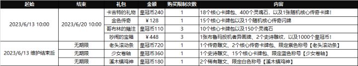 本周(6月13日-6月20日)礼包更替说明如下图