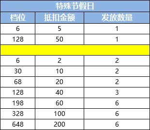 【代金券档位】如下: