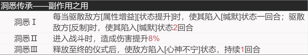 洞悉三时,X获得被动:释放至终的仪式后,使敌方陷入[心神不宁]状态,持续1回合。