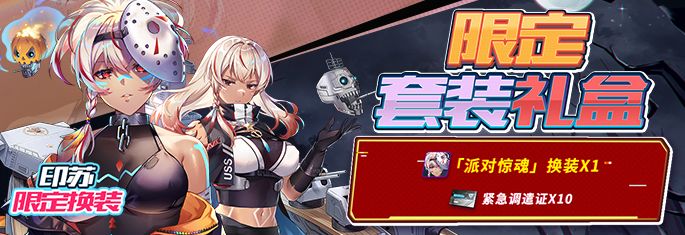 ※商店限时上架SSR舰灵「印苏」限定换装礼包:印苏-派对惊魂x1、紧急调遣证x10(上架期间可购买1次);
