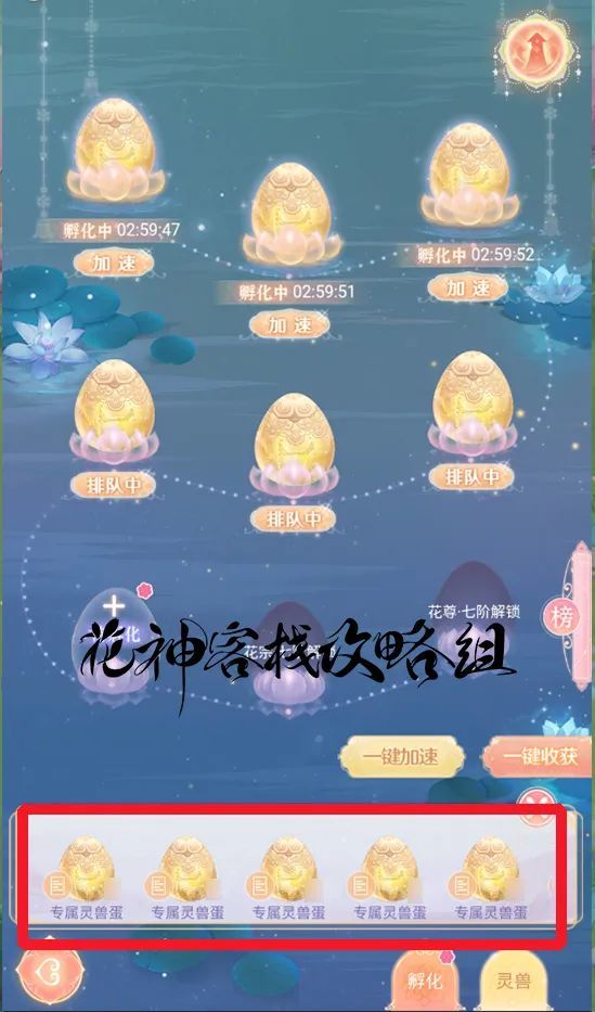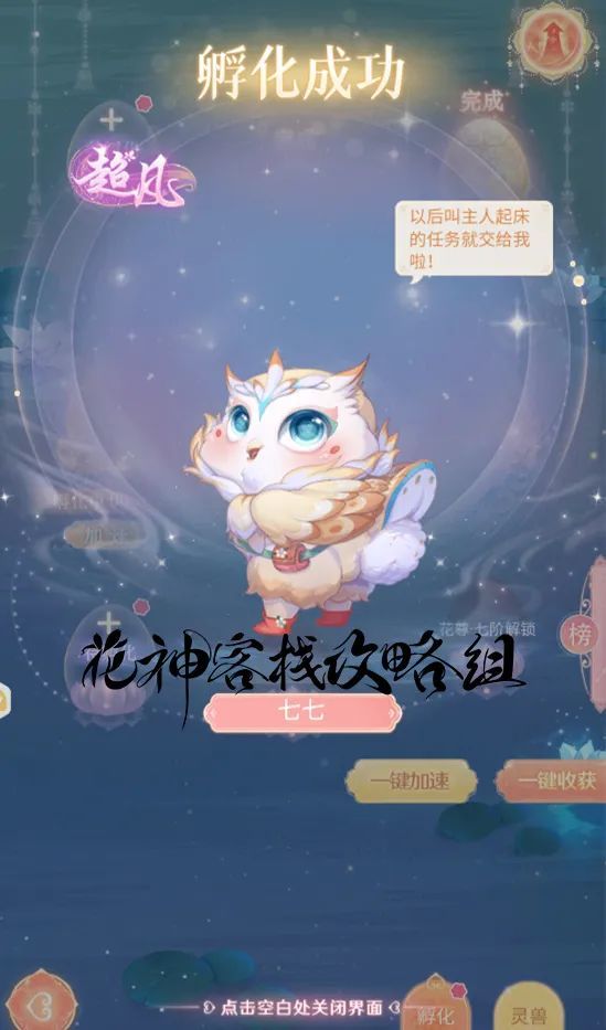 如果花使在图鉴中看到自己喜欢的灵兽,可以通过对应的羁绊获取灵兽蛋进行孵化。当然灵兽蛋的孵化也需要时间,如果花使们想要尽快见到自己的小可爱,可以使用“孵化火符”加速。