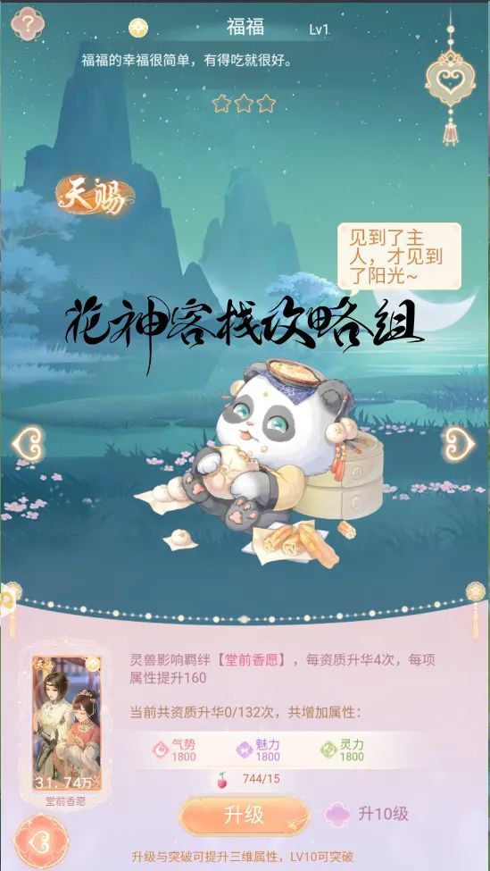 【尘缘】:用于羁绊升级,培养羁绊可以提升自身魅力。