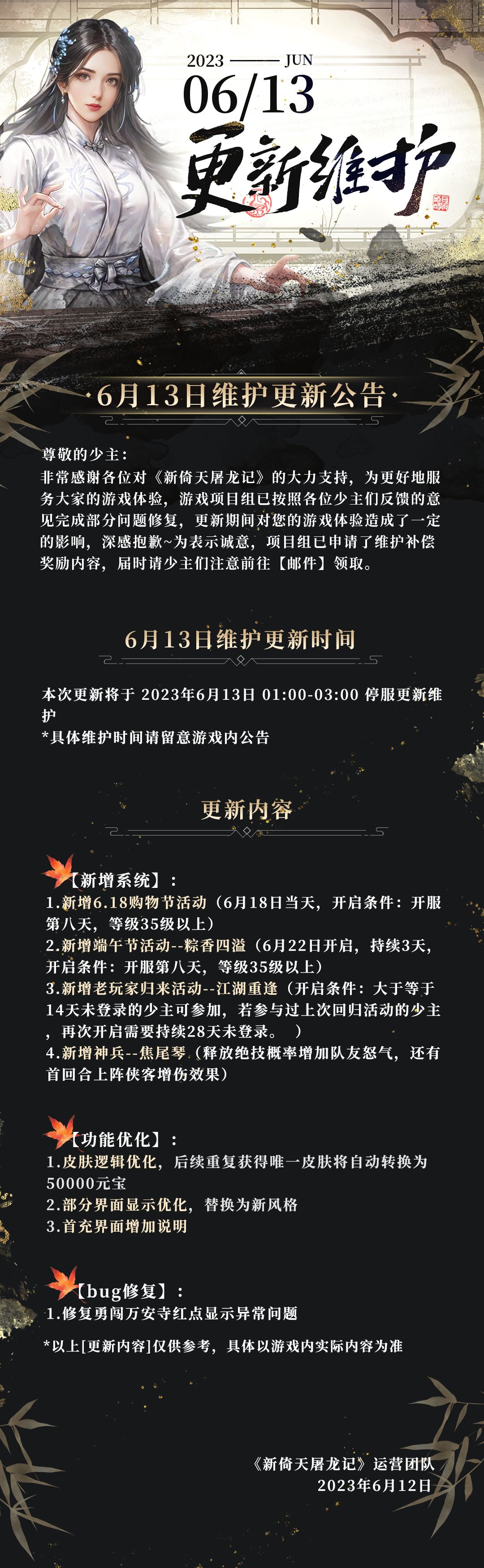 6月13日维护更新公告