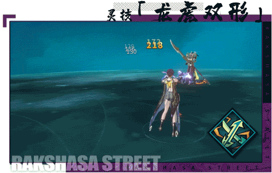 在《镇魂街:天生为王》中的孙策作为孙斩天·雷帝的守护灵,他的守护灵技能尤其强调与寄灵人的攻击配合:其灵技【龙虎双形】能与斩天一同行动施展合击,配合着孙斩天·雷帝的进攻,孙策闪现敌人身后,一击上挑将其压制,随后斩天手握伯符旌从天而降,造成巨额雷电伤害,并且触发一定层数的感电效果。