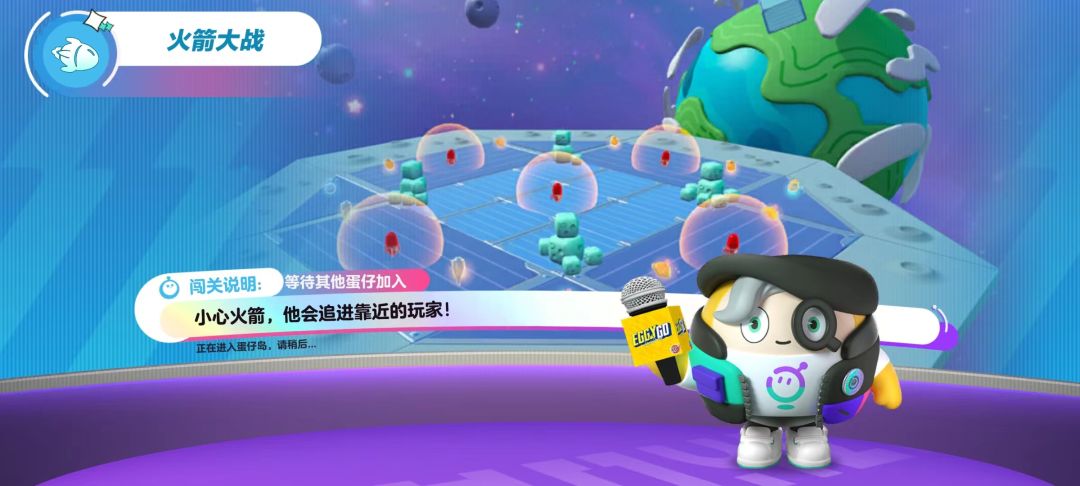 前期的火箭伤害不是很高,不过我们要避免和敌人长时间缠斗。因为地图里一直刷新的道具如果对手多次命中自己,头顶上被扣除的“血条”还是很客观的。再者我们要意识到这个“血条”指的并不是生命值,而是指体重。在蛋仔派对生存模式中,被对手击中会扣减一定的体重值。体重越低,下一次被击中时被打飞的位移距离会更加远,更容易被打出边界被淘汰。所以体重清零并不宣告死亡,有时会看见组队模式里没体力槽的对手还能通过场上存活着的队友传送回来就是这个道理。