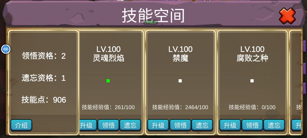 具体怎么触发的不清楚,宝箱怪有几率突然卡出三火球选择(之后再打这宝箱怪会一直弹出这个bug),这三个都点不了,此时返回主界面再进会给大量经验,然后弹出三个可以点击的技能框,我试了试这框点个几百次就自己消失了,然后我发现可以利用怪物回血机制连点器重复上述步骤刷等级跟技能点。😳