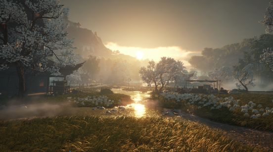 和一众开放世界品类的游戏相同,燕云拥有多种地貌环境。这次测试可活动的区域主要还是野外,可能由于临时素材的缘故,场景物件同质化较高,草堆和树木之类的变化不是很丰富,得益于光影和云雾等效果的加持掩盖了不足。