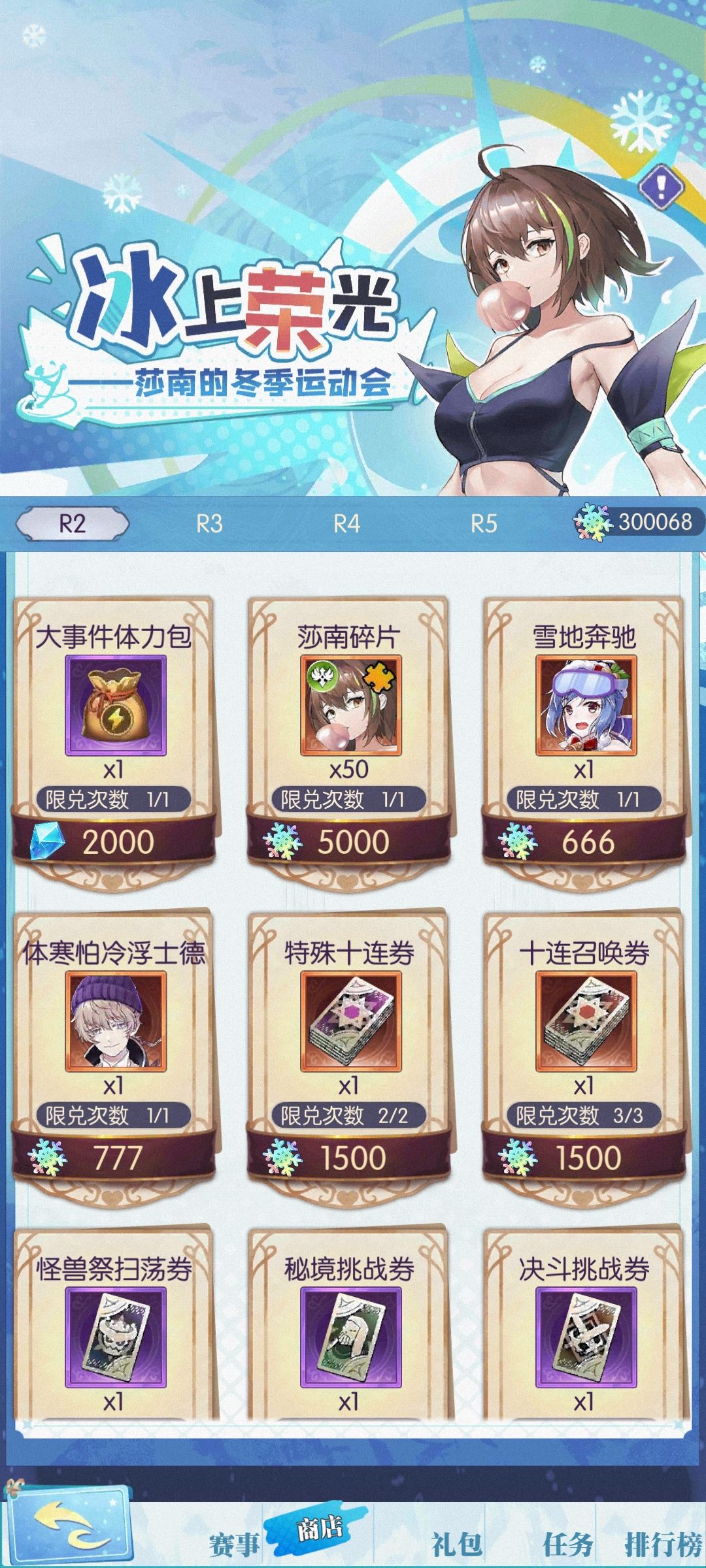 7. 挑战赛事胜利、完成活动任务都会获得活动货币「雪花」,「雪花」可以在活动商店兑换奖励。