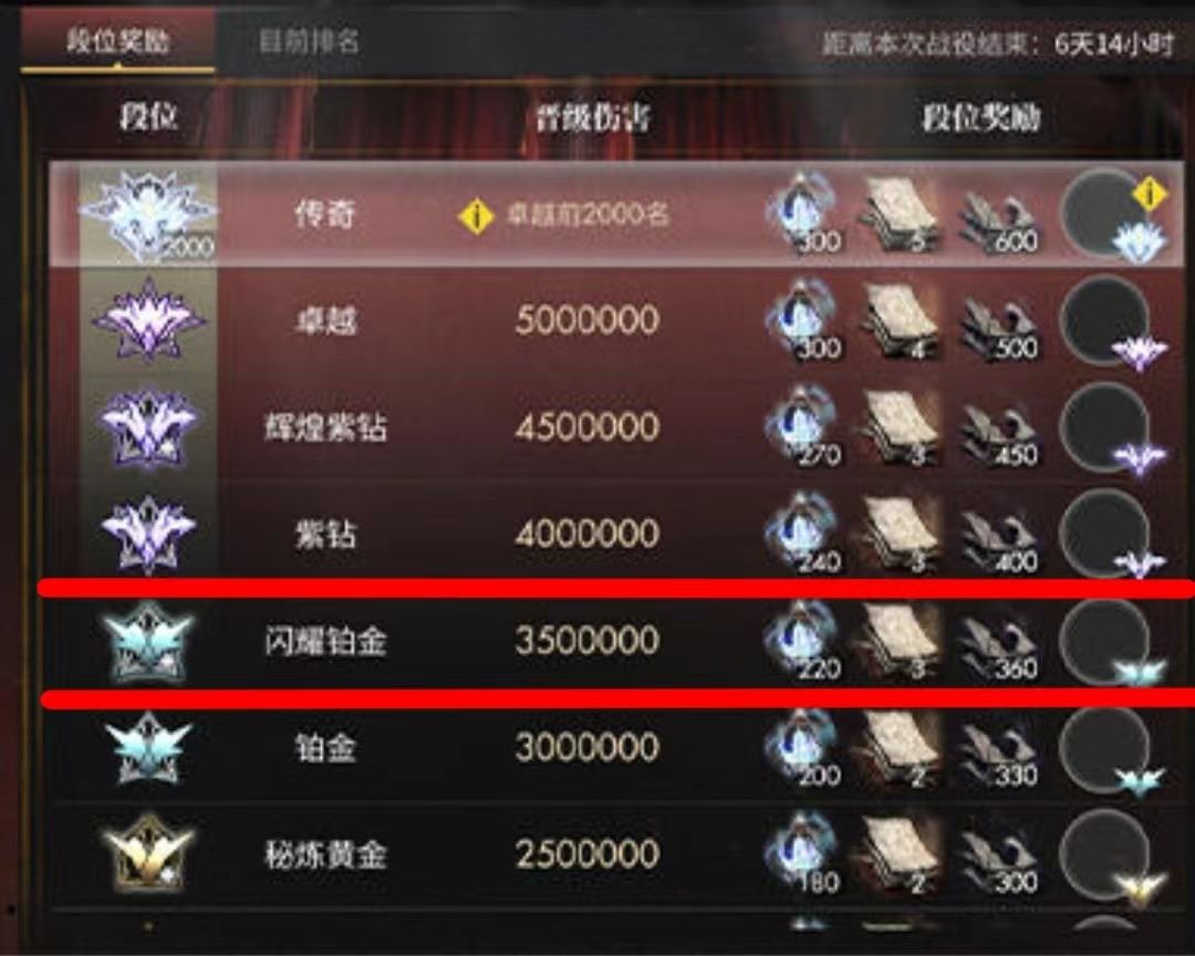 按伤害量设11个段位层次,每期可上两支队伍,战斗后计算两队伤害总和,队伍中光灵不能重复。