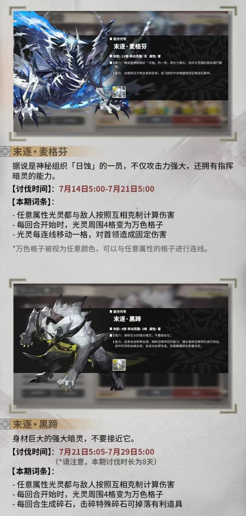 7.14-7.29有两期荒典,核心机制相同,全属性克制。