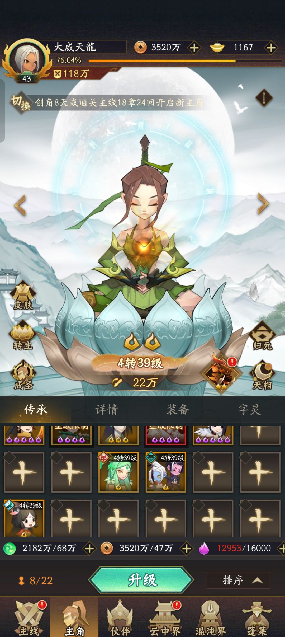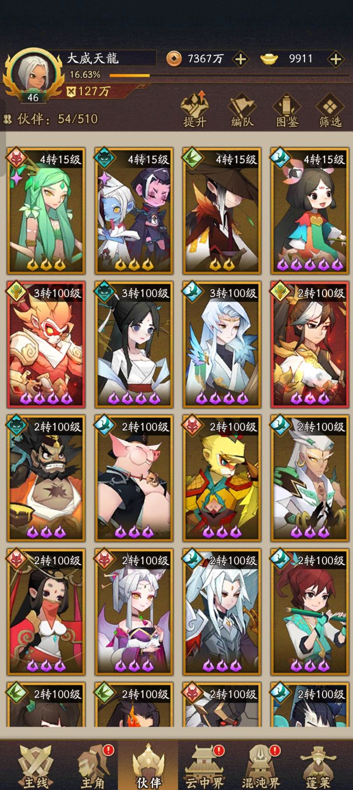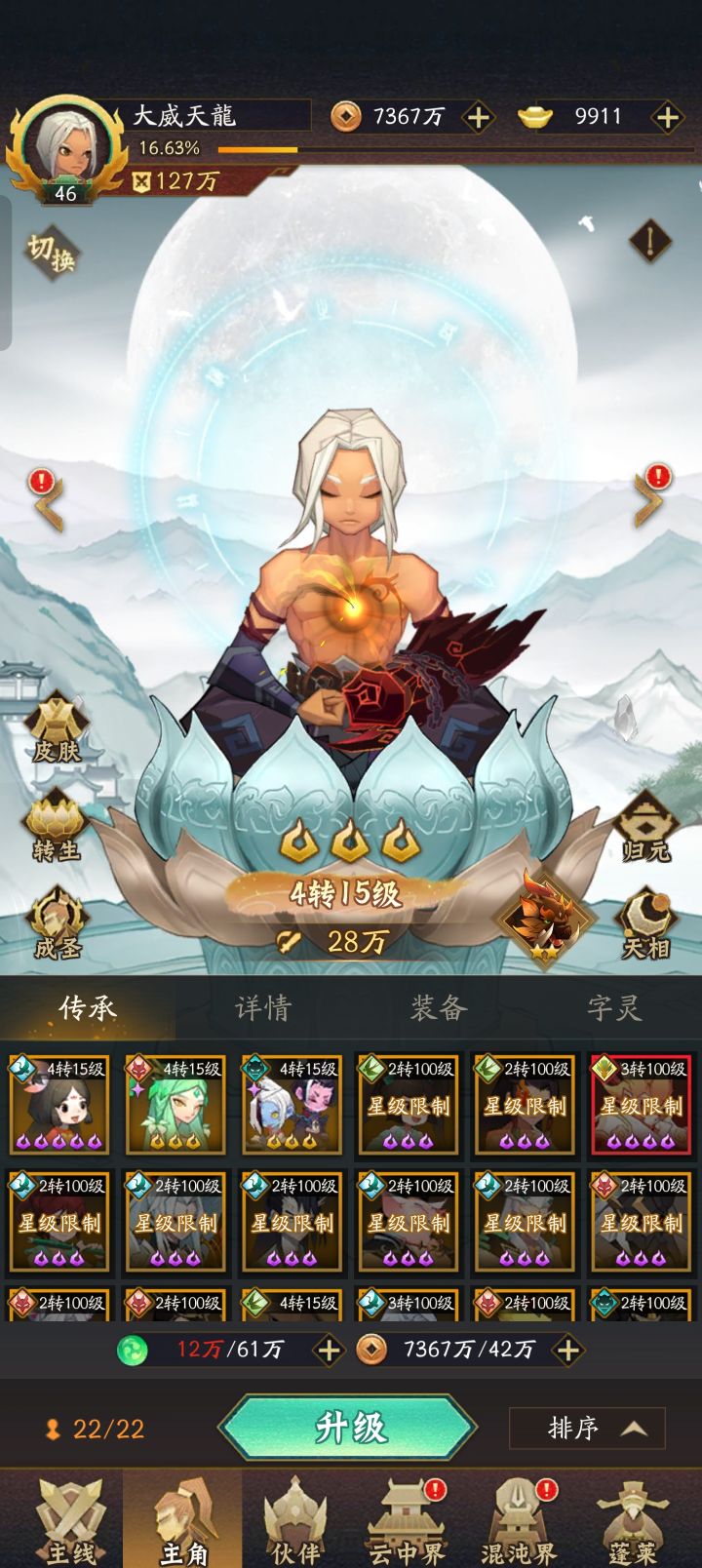 主角常规是武圣开场,开荒会舒服一些,也可以直接飞羽,咋本着体验游戏进度最重要来看,平民这样节约一些资源三个主教可以重置,只是剑灵必须等八天,心愿设置好,我玩了几个号,走了很多弯路,目前主玩两个阵容,分别两个号,一个是青龙主转哪吒飞位号,另外一个是燕赤霞,燕赤霞9星,感觉不是太好,点了天相没有传的厉害 确实削了,后期再测试十九妹和后羿,玩游戏嘛,主要是体验游戏,每天按部就班刷刷刷多无聊,这个游戏有个好处,吃掉的卡归元可以返还,不会消失,所以游戏中期可以多种选择,不要去刷开局号浪费时间还伤人,前期游戏是最肝人的,阵容不对中期大巴时间可以慢慢试,这点是非常友好的。如何走小倩抽的多可以玩,配合青龙双C,系统给的阵容前期基本上大家都一样,中期开始慢慢转阵容,后期大后期,会出神魔,(游戏后期是三个猪脚都需要练,第八天就开神魔了,然后仙界Pk需要三队。