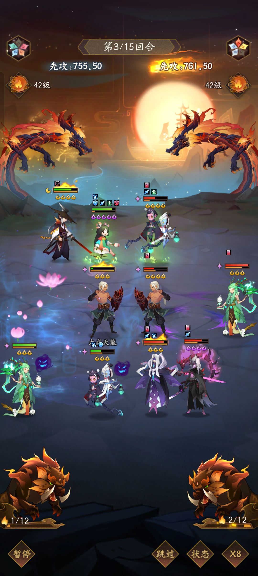 ,送的精卫,青龙主C,治疗女娲,黑白无常,另外一个副c可以暂用猴子
