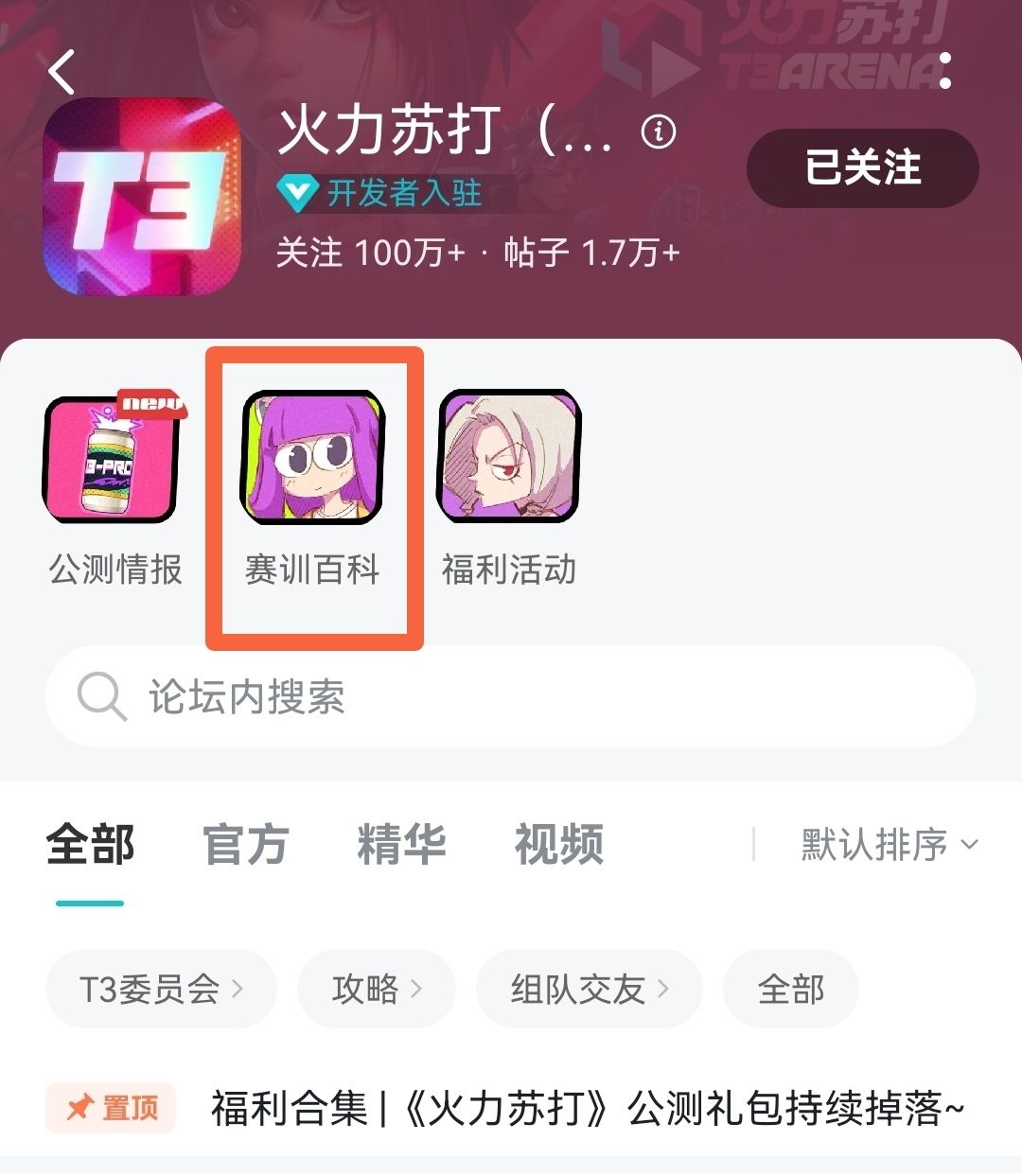 使用TapTap客户端(安卓和iOS皆可),可直接在游戏详情页顶部点击“攻略”按钮打开,也可以点击论坛顶部图标【赛讯百科】打开。