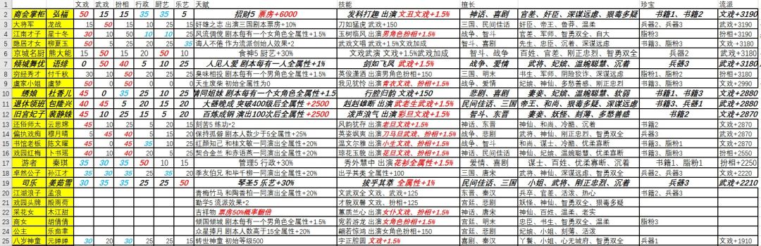 角色的属性取决于角色等级+珍宝等级,400级以后角色需要的经验直线上升且戏曲大师无法加入其他流派,紫色以下的角色停留在400级反而更好,正确的培养角色能节约不少资源和时间。