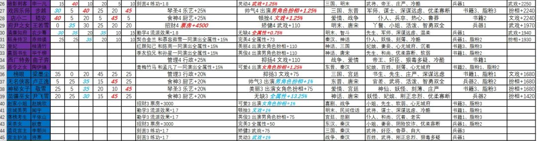 需要注意,戏园头牌千万不要突破,隐居才女的天赋已经修好了,戏园头牌400级吃流派能加12720文戏,突破400级反而只有2572*2=5144扮相,后面剧本更缺的是文戏角色,而且突破后属性并不出彩扮相也轮不到她,留在400级反而能获得最大属性加成还不用费时间培养