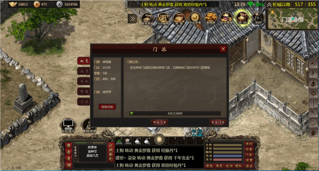 新人进入游戏我们直接跟着主线任务走,这里需要特别说明一下,主线做到击杀黑忍者之后是没有任务了。一、门派日常首先加入门派,可以获得大量的草药和生药,以及门派令和贡献,门派令可以在门派商店兑换大量物资。前期可以选择兑换双倍经验丹,每天可以做3次门派任务,碰到打不过的或者比较难打的可以选择放弃,30分钟后重新接,尽量前期做击杀怪物的怪物。