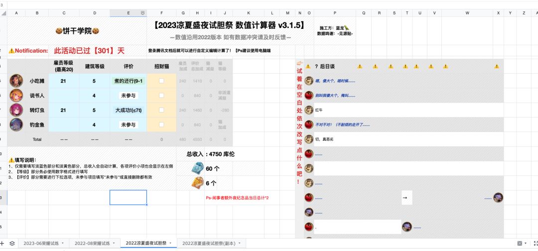 (拜托各位佬们如果有可能,记录一下看看今年是不是还准(ly有没有换公式),如果有误差啥的差了多少,我这边重新算,目前沿用了2022旧版本的数据计算)