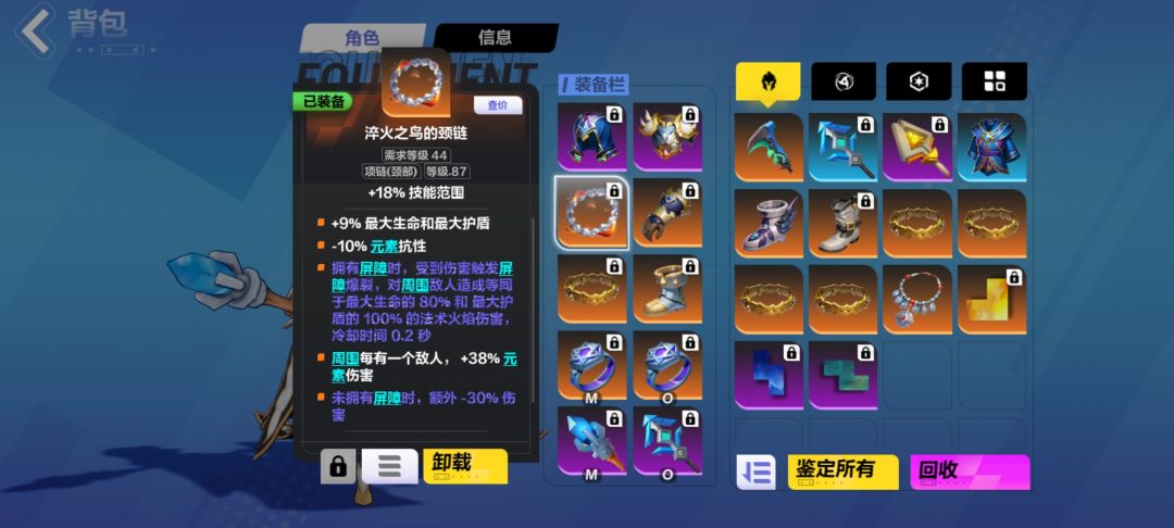 衣服使用技能受到伤害配合项链使屏障爆炸,衣服必须是长夜污王灵袍。