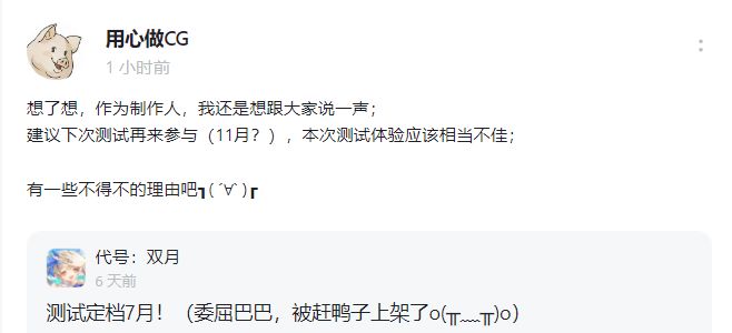 测试时间:大概率7月下旬,无法与TapTap活动同时进行(由于一些特殊原因o(╥﹏╥)o)