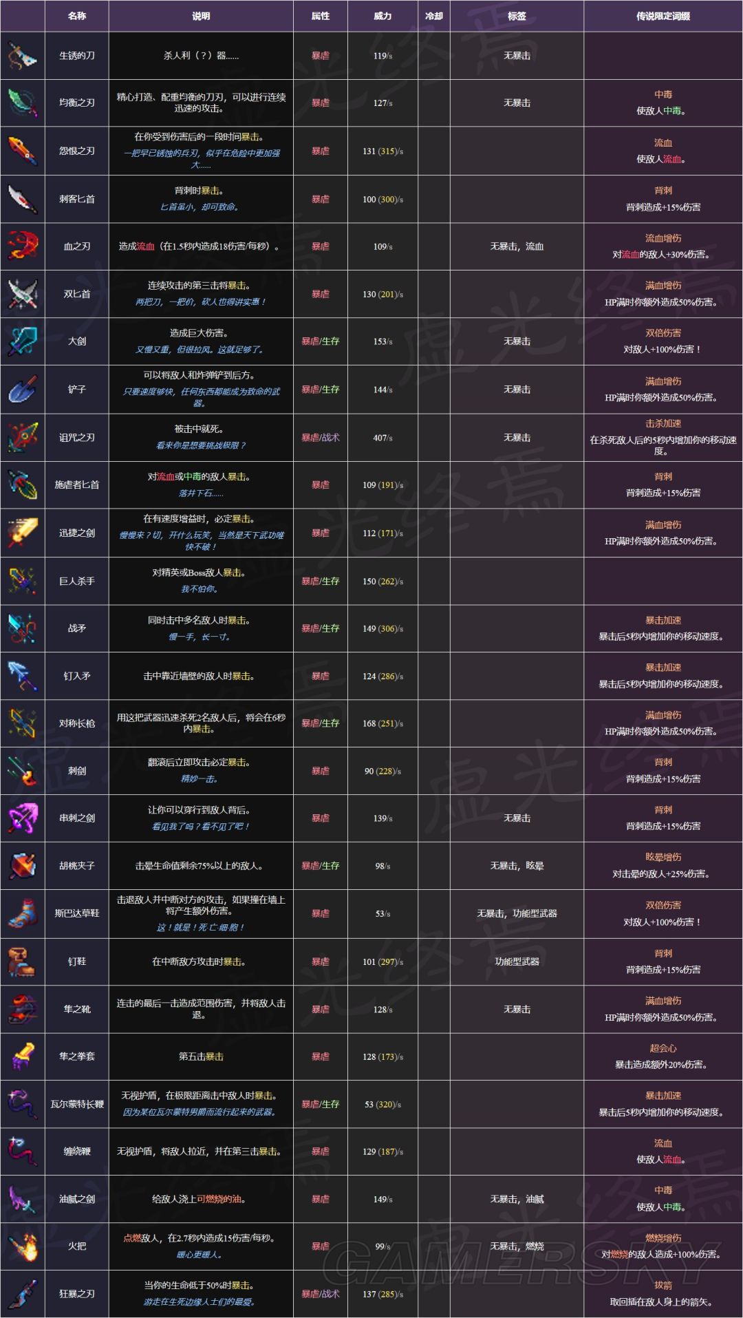 武器及词缀图鉴