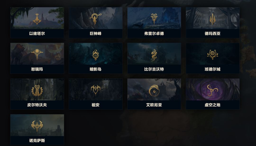 特质:德玛西亚、弗雷尔卓德、艾欧尼亚、诺克萨斯、皮尔沃特夫、暗影岛、恕瑞玛、巨神峰。虚空、祖安,约德尔人,暗高、浪客;