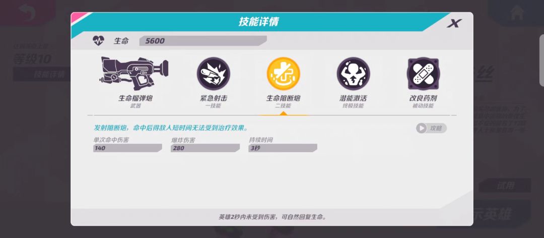 单发抛物线爆炸型(CD10s,爆炸范围6m大于武器、一技能,更易于使多人命中),无爆头判定,无衰减