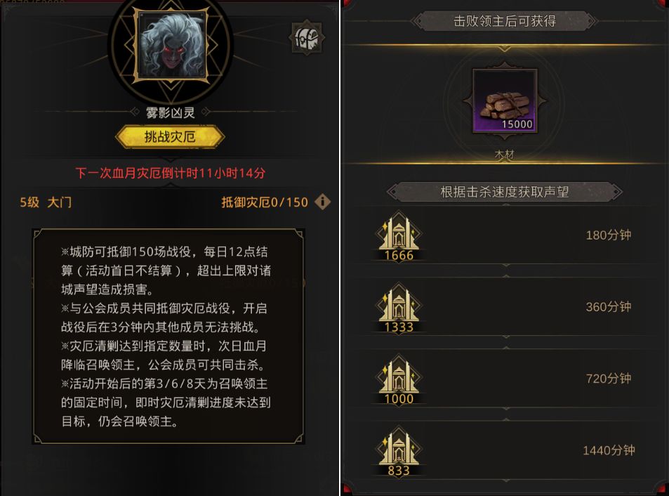 注意点:①如累积清缴战役(每日血月怪物海)场次达到数量,次日即开启领主,举例:原固定第6天开启第二阶段领主,若清缴战役进度满,二阶段领主变更为第5天开启