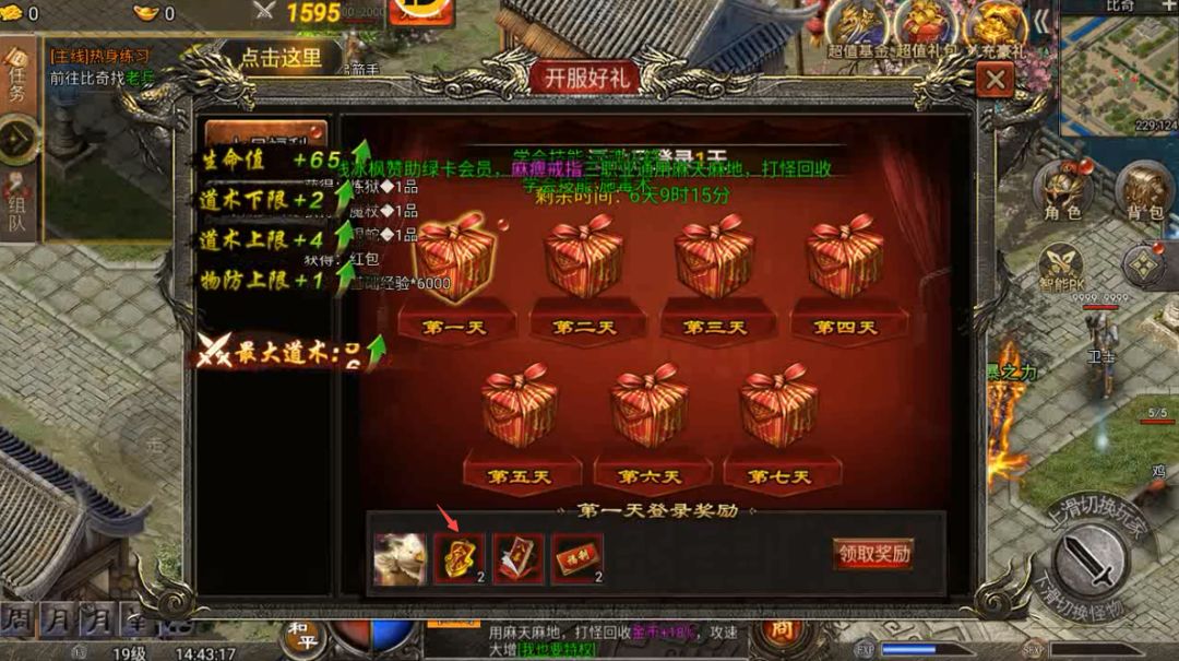 领取开服好礼第一天的礼包