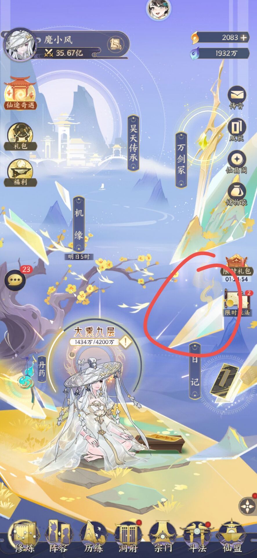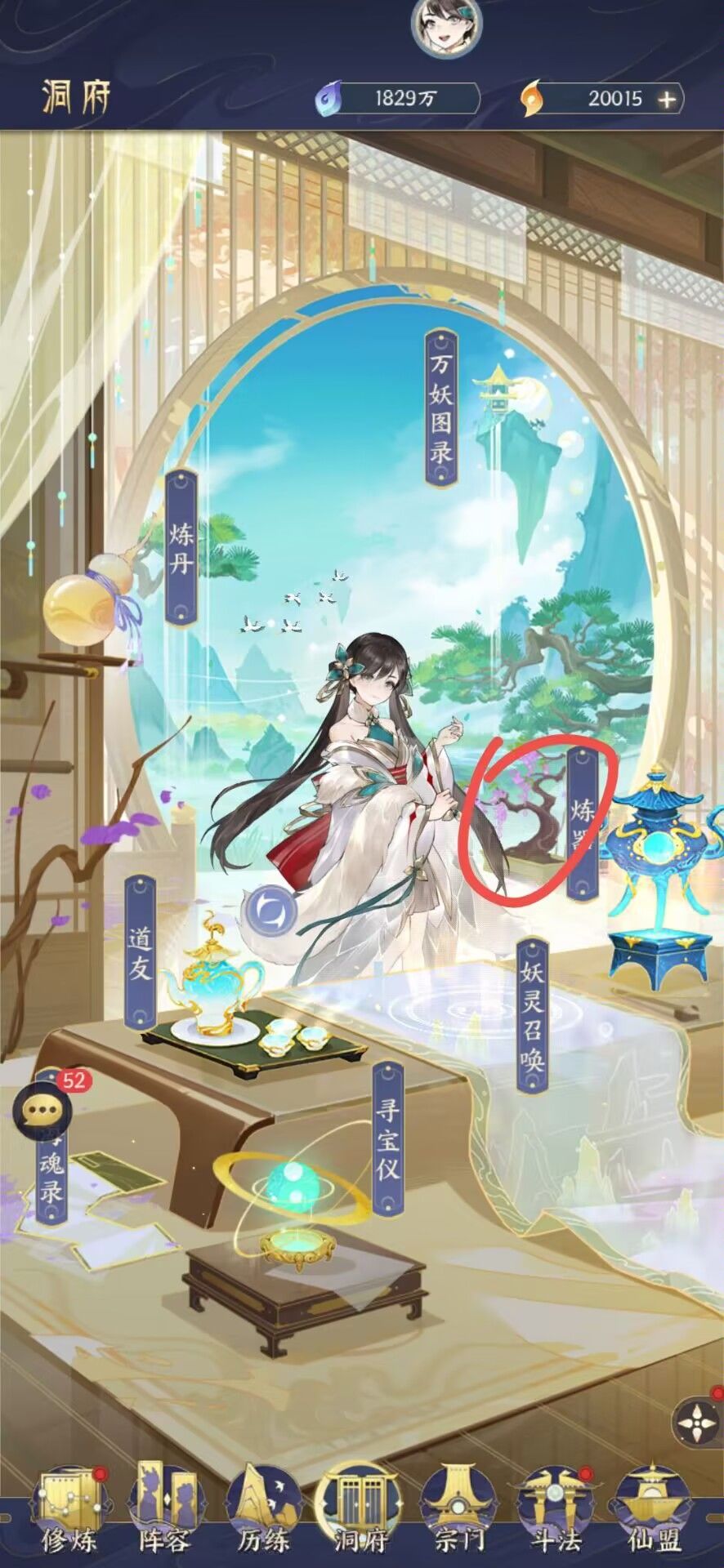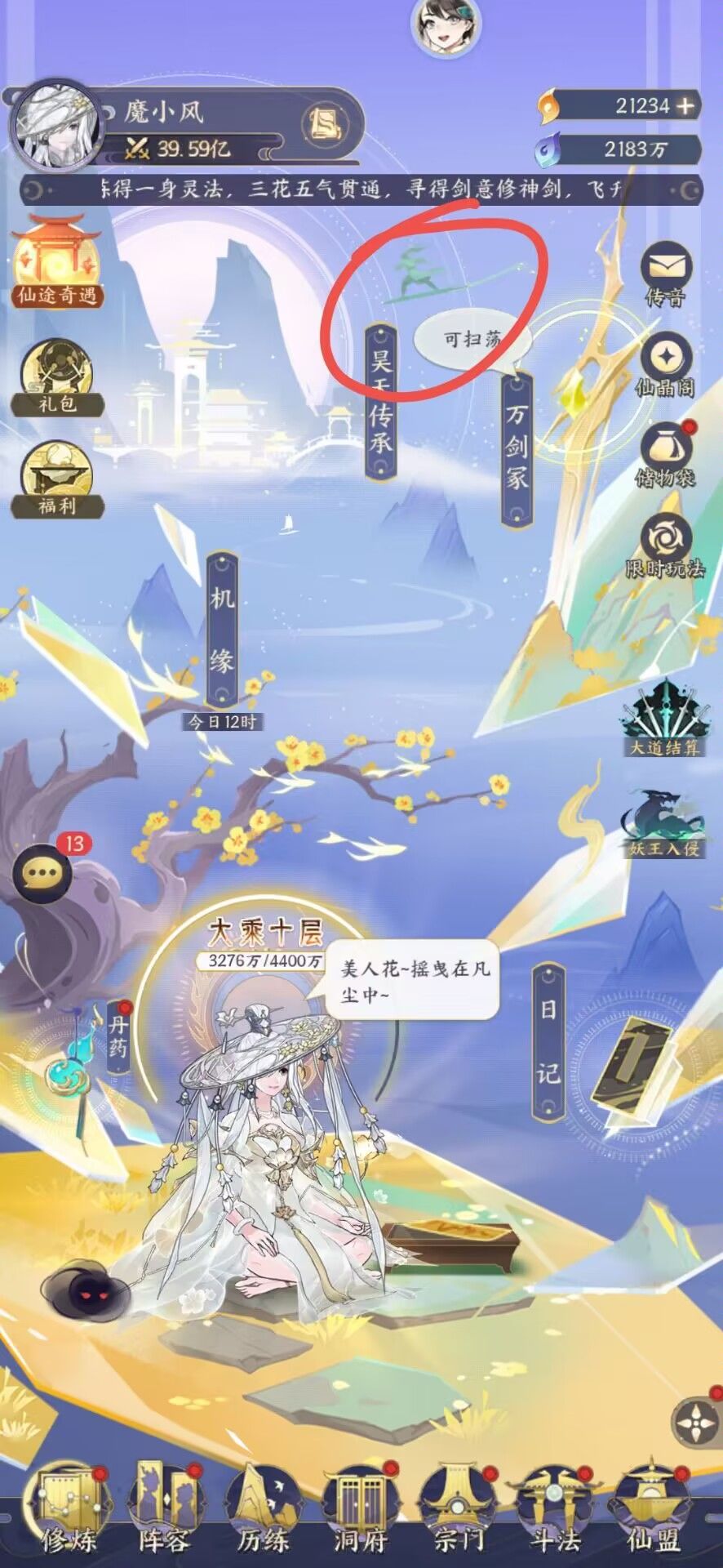 3.1飞升后仙盟建筑洞天猎妖和仙盟法阵之间的白色小鱼給炼星石100个