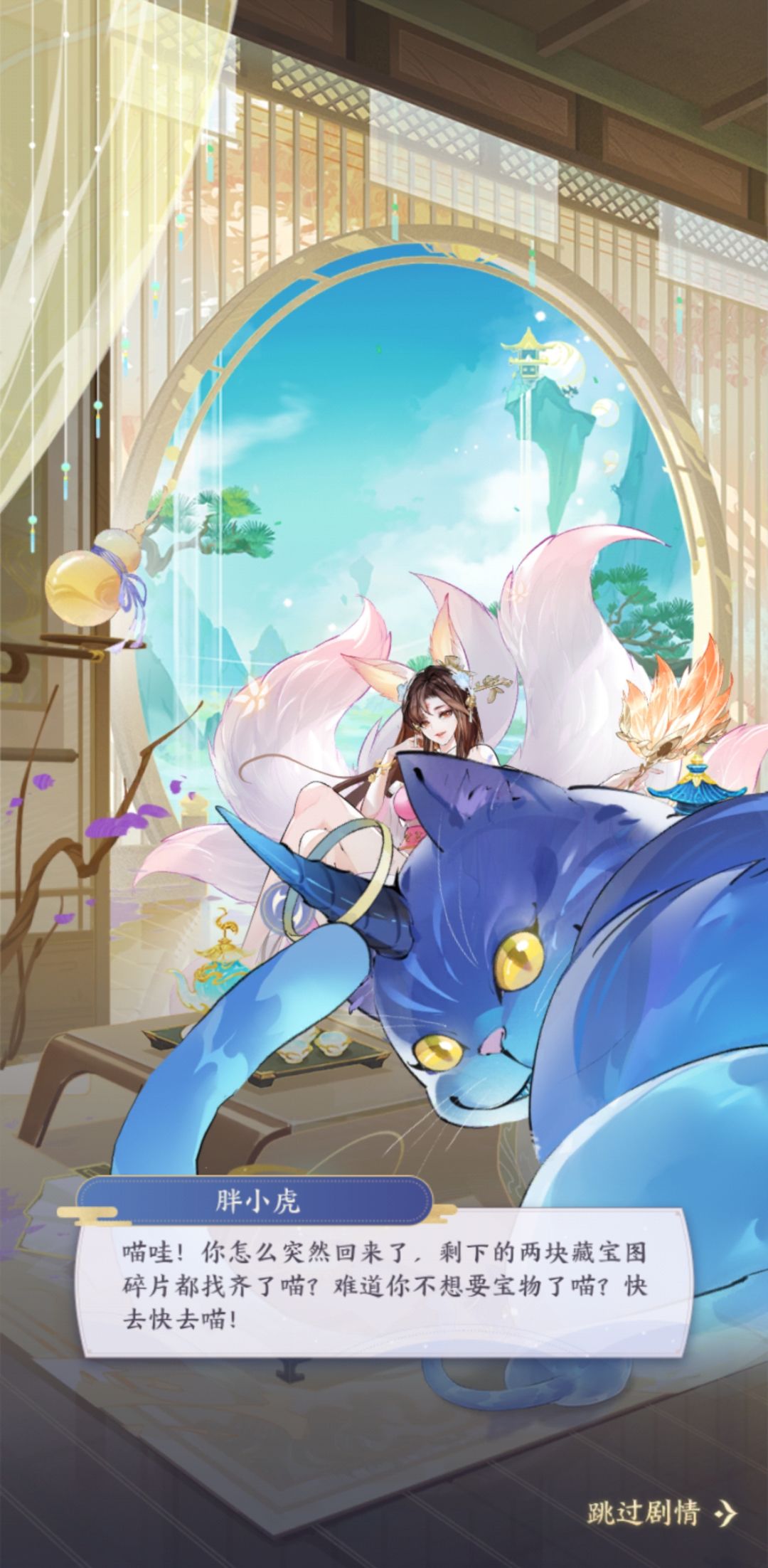 4.1 洞府遇到肥猫(老演员了)告诉你它把宝藏图弄碎了,给你一片,让你去寻找另外两片